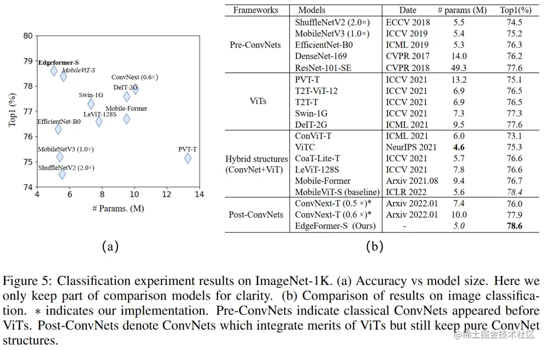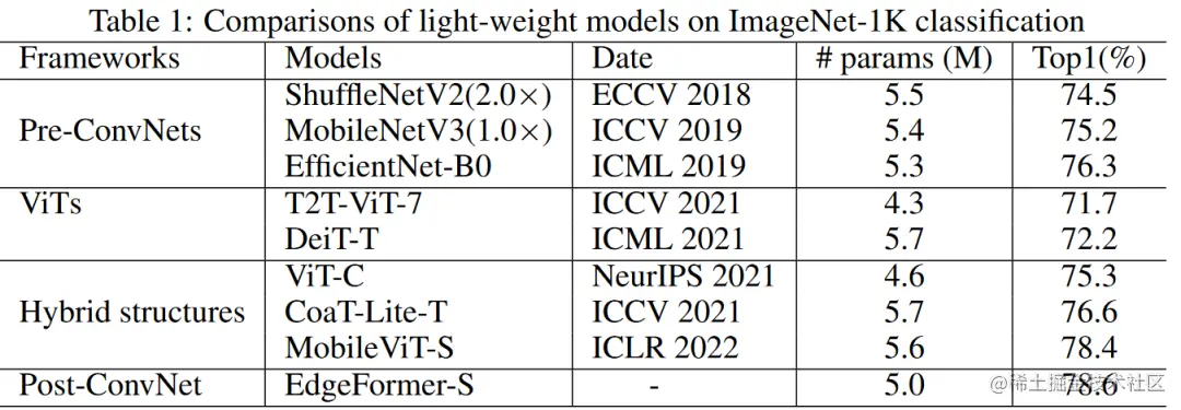 甚至,由于这些年来卷积网络的流行,一些现有的神经网络加速器围绕着卷积风格的操作被设计出来,而并没有有效支持例如 softmax 这样复杂的非线性操作以及大矩阵乘法所需要的数据总线带宽数据。这些硬件和软件上的限制使得纯卷积的轻量模型相对于那些即使在其他方面具有同样竞争力的 ViT 类的模型仍然是更好的选择。