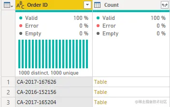 在 Power BI 中,一旦连接到源数据(传统 CSV 文件、SQL Server、API、电子表格……),我们就会得到这个视图,它会为我们提供有关数据质量的信息。