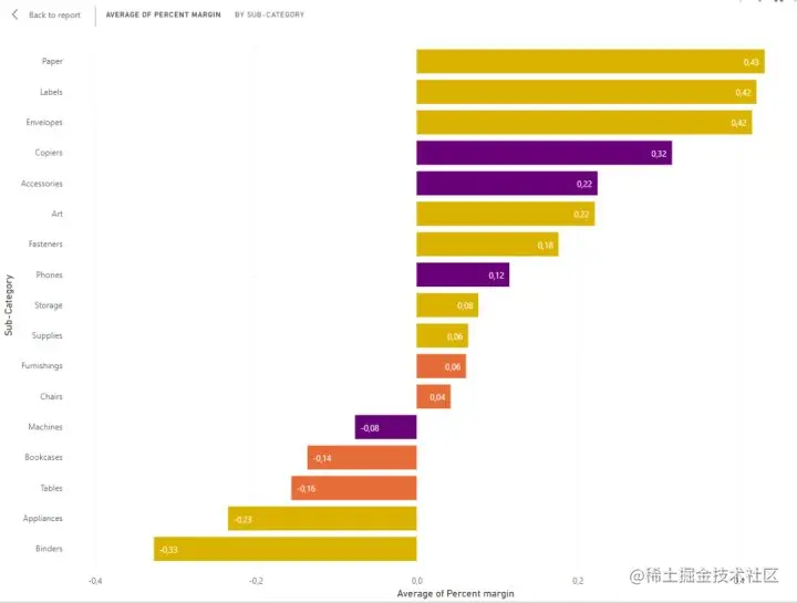 左侧的深蓝色表示该产品子类别正在亏损