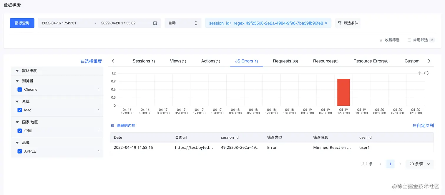 为了解决这些问题,火山引擎Web Pro监控推出了强大的数据探索能力,该页面能够同时满足日志细查、多维分析、用户行为重建等功能,通过它来承载从宏观视角到微观视角的转换。