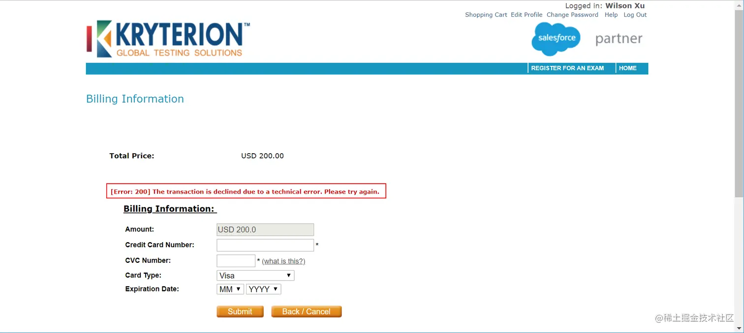 checkout(支付时),出现Error 200技术错误,如下图: