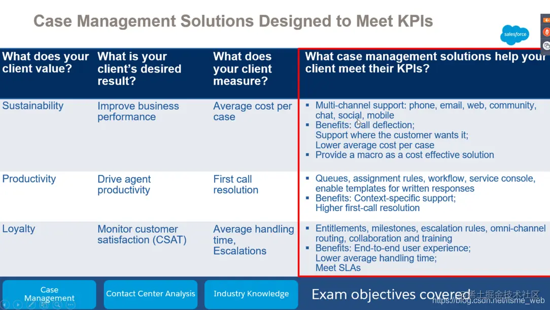 - 不忘做笔记梳理知识脉络,如Service Cloud Baisc,并做个专题研究下一下(把同一类型题目放在一起对比下)Metrics,CSAT,不同Community的特性(Partner Community / Service Cloud Portal / Customer Community / Site);