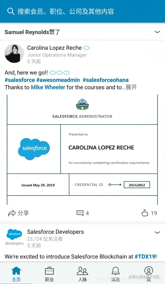- 在领英上关注那些sf大咖的账户,偶尔会碰上在领英上post证书的同行,这个时候如果有备考计划,不妨顺着这条线索找到他在备考时推荐的一些参考资料(外国人喜欢叫Dumps,如:Service Cloud Dumps),比如类似这种: