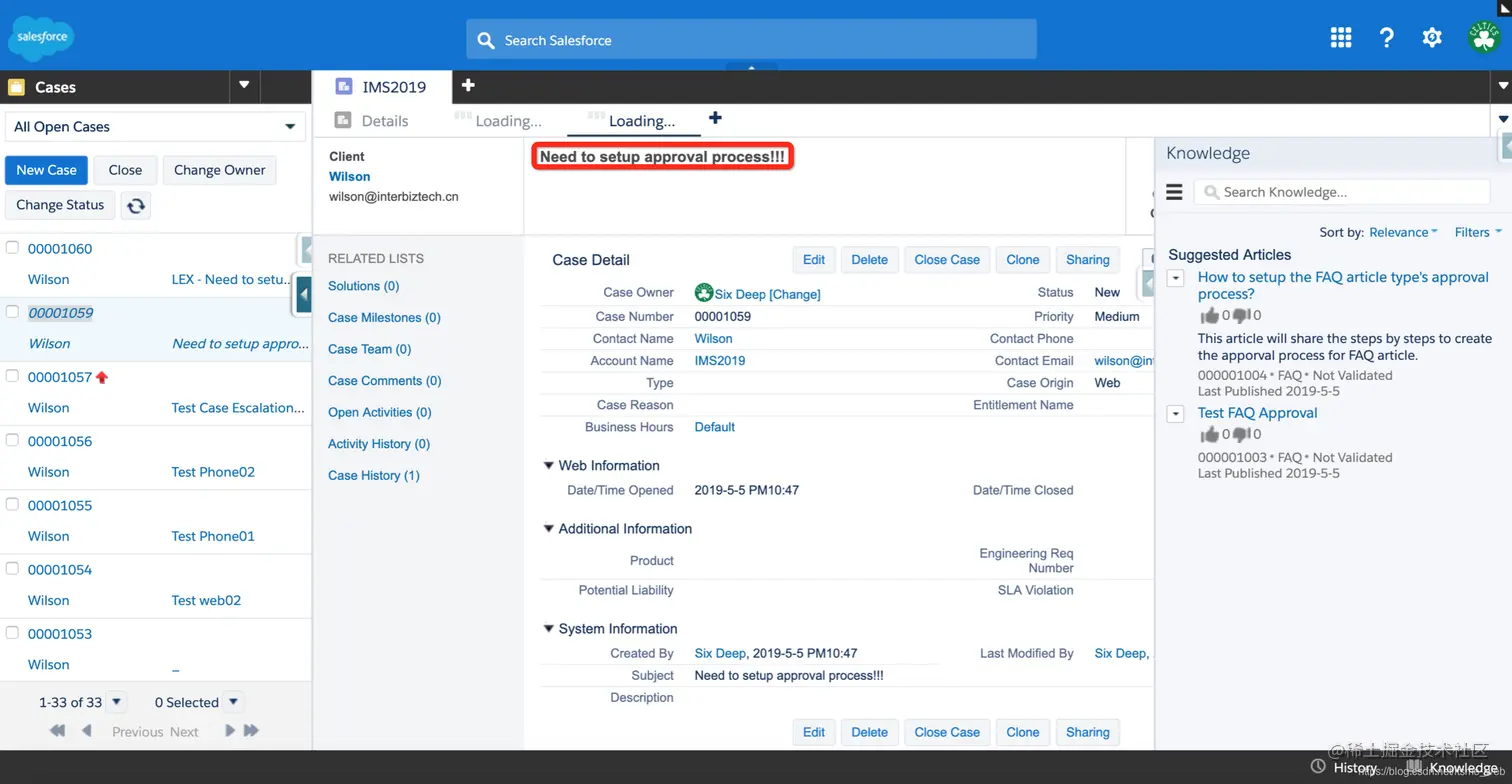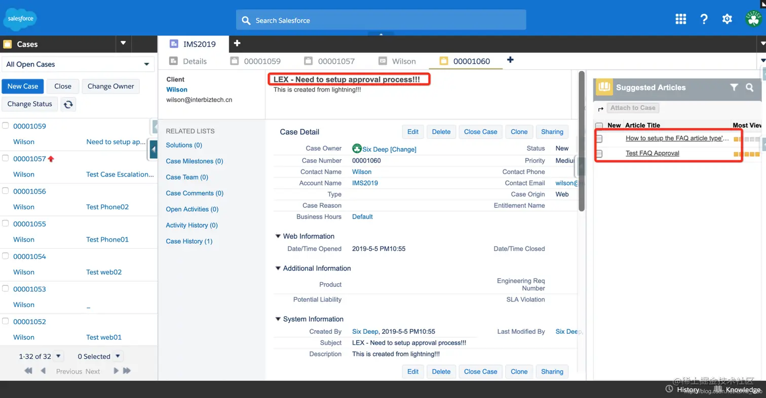 但是在Lightning中创建的Case,能够根据Subject的文本信息只能推荐相关文章,如下图: