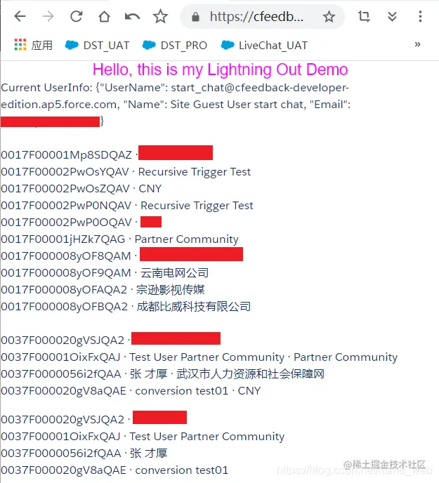 效果1:dependency app通过实现ltng:allowGuestAccess接口,以Guest User Context供外部User访问