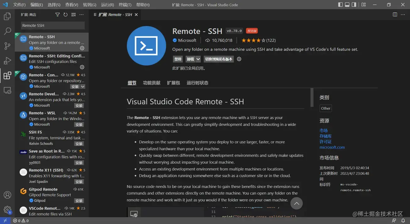在VSCode中安装remote ssh 插件
