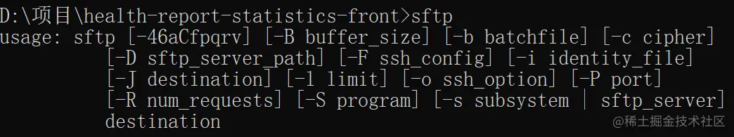 打开cmd 进入项目压缩包所在目录,输入sftp 输出如下结果即可进行下一步