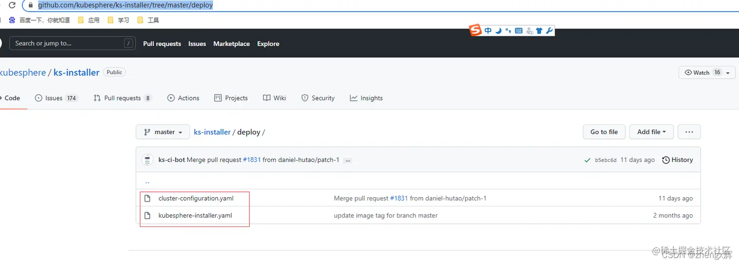 1.打开github中kubesphere项目,下载yaml文件到master节点