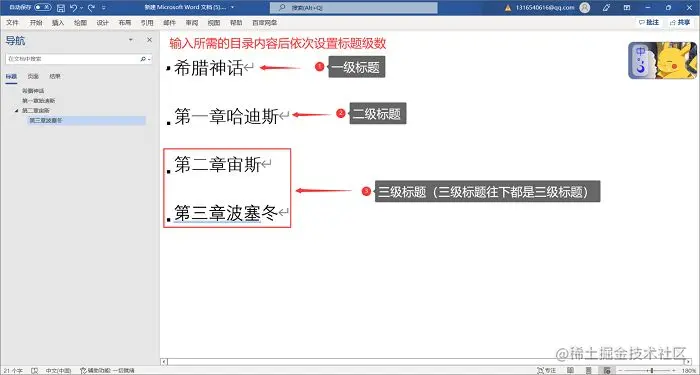 步骤1.在你的word文档里面输入想要转换成目录的标题,随后将这些标题依次设置为一级标题、二级标题、三级标题(到三级标题为止即可)。