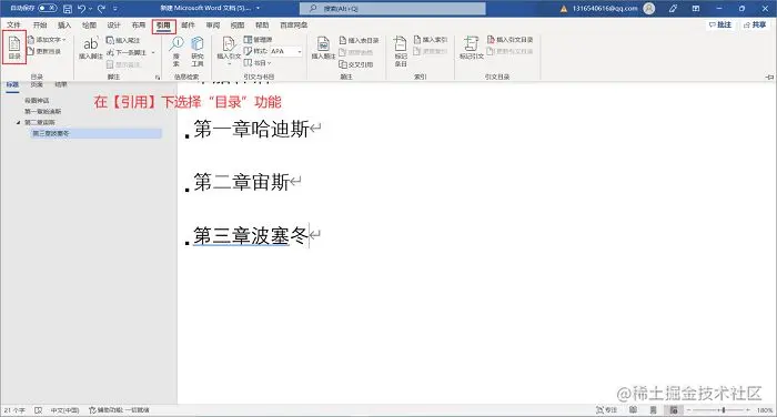 可以看到目录自动生成成功了,点击想要查看的目录标题,就可以迅速跳转到该目录的内容部分了!