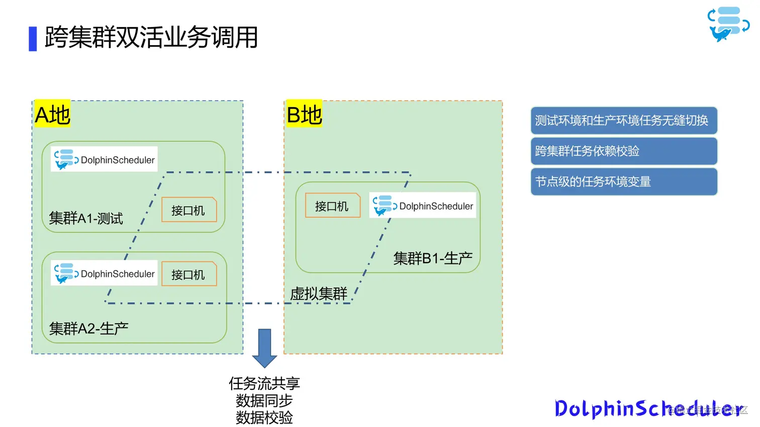 在完成了跨集群的数据同步和访问,我们还会使用DolphinScheduler进行跨地域和集群的任务调用。