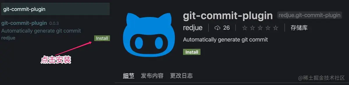 - 首先我们需要去 Vscode 插件市场搜索 git-commit-plugin 并且进行安装。