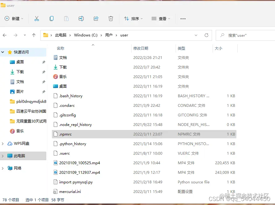 在卸载nodejs并重新下载另外版本的nodejs时,刚安装好后可能会出现npm报错,即Error:EPERM: operation not permitted, mkdir'C:\Program Files\nodejs',此时需要删除C:\用户\user目录下的.npmrc文件即可