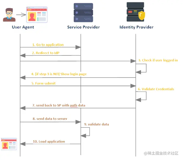 The system that authenticates users is called an identity provider. The system that trusts the identity provider for authentication is called the service provider.