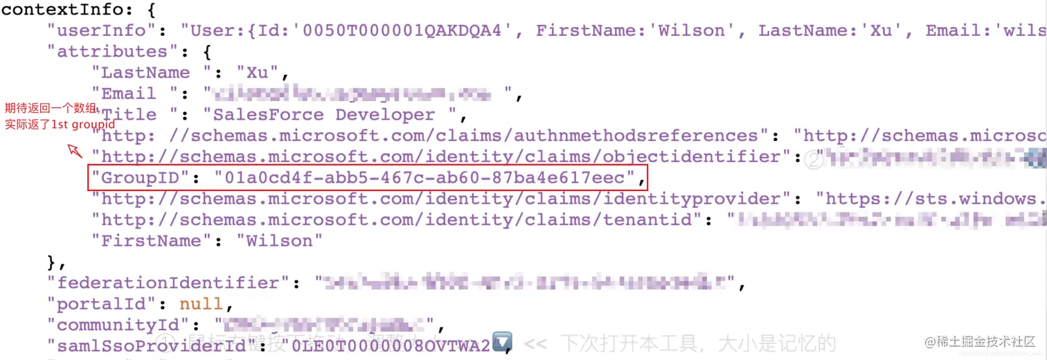 A5、可以。比如全球化企业A,在世界各地有不同office,每一个国家都用的是单独的SFDC Org,此时A企业可以在Azure AD开一个SFDC Connector Enterprise application,将其他SFDC的Entity ID,Reply URL都配置进来即可,而此时我们可以通过在Claims里面配置Group来区分不同SFDC Orgs中的用户,进而帮助JIT Apex Handler确定登入用户所属国家。需要特别注意的是,请确保同一个Application的User仅仅归属于一个Group。因为Azure AD会传多个属性相同的值,但Apex Handler从attributes中解析key (如GroupID)时,Map中的key同名会被覆盖,只能取到一个。对于存在同一个人访问不同SFDC Orgs的需求,建议在SFDC创建用户后,将Federation ID贴进去或者创建一个Common Group专门维护特殊需求。