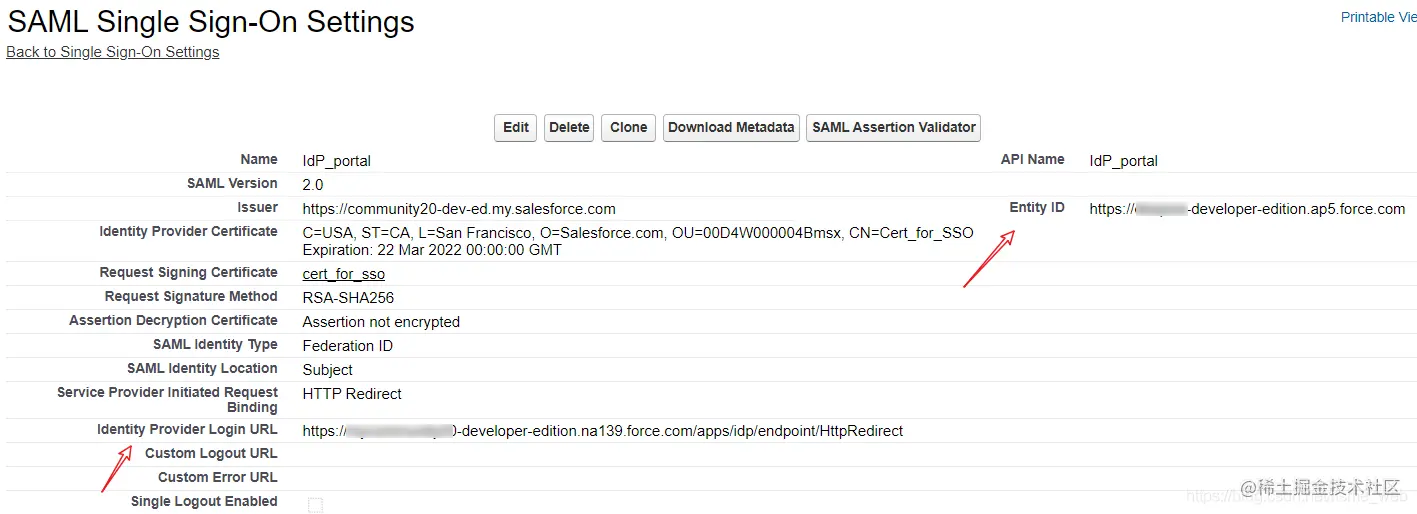 #3. IdP:在IdP详情页下载证书与Metadata或复制Salesforce Identity的URL作为后续步骤的输入项;