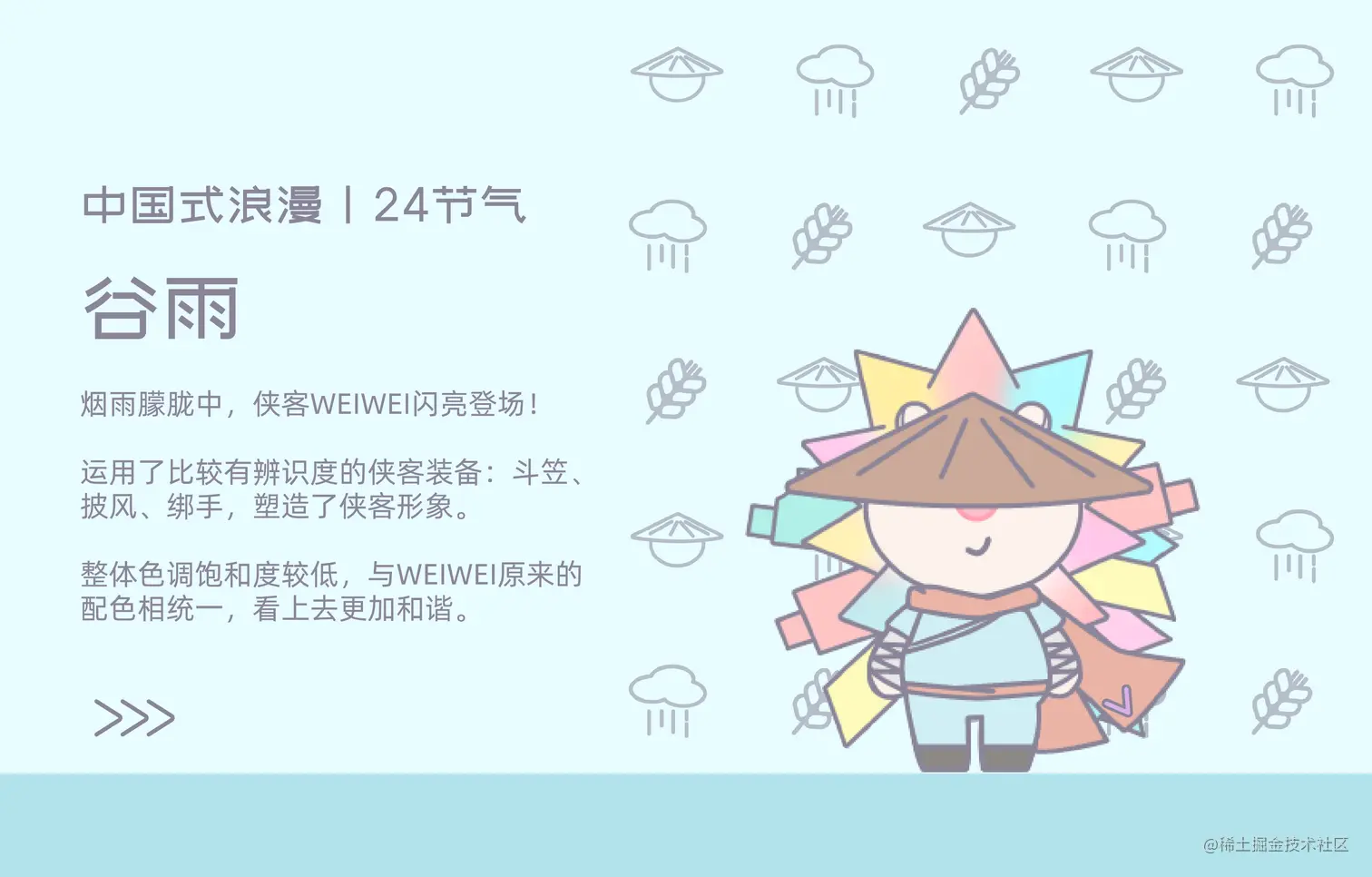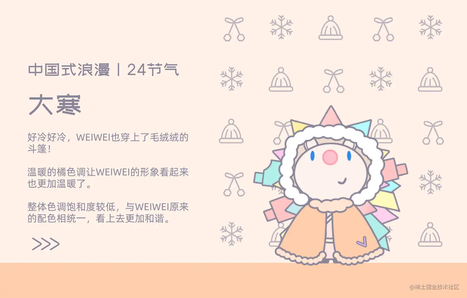 WEI WEI自诞生之日起,因呆萌的形象和梦幻的色彩深受大家喜爱,因此,我们决定给TA赋予更多生动人格化的形象。在24节气主题下,如果给WEI WEI进行服装、配件形象搭配,脑洞大开的你会怎么设计呢?