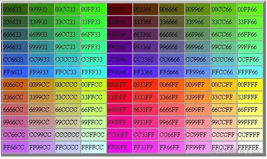 颜色代码:1 白色 #FFFFFF2 红色 #FF0000 3 绿色 #00FF00 4 蓝色 #0000FF 5 牡丹红 #FF00FF 6 青色 #00FFFF 7 黄色 #FFFF00 8 黑色 #000000 9 海蓝 #70DB93 10 巧克力色 #5C3317 11 蓝紫色 #9F5F9F 12 黄铜色 #B5A642 13 亮金色 #D9D919 14 棕色 #A67D3D 15 青铜色 #8C7853 16 2号青铜色 #A67D3D 17 士官服蓝色 #5F9F9F 18 冷铜 色 #D98719 19 铜色 #B87333 20 珊瑚红 #FF7F00 21 紫蓝色 #42426F 22 深棕 #5C4033 23 深绿 #2F4F2F 24 深铜绿色 #4A766E 25 深橄榄绿 #4F4F2F 26 深兰花色 #9932CD 27 深紫色 #871F78 28 深石板蓝 #6B238E 29 深铅灰色 #2F4F4F 30 深棕褐色 #97694F 32 深绿松石色 #7093DB 33 暗木色 #855E42 34 淡灰色 #545454 35 土灰玫瑰红色 #545454 36 长石色 #D19275 37 火砖色 #8E2323 38 森林绿 #238E23 39 金色 #CD7F32 40 鲜黄色 #DBDB70 41 灰色 #C0C0C0 42 铜绿色 #527F76 43 青黄色 #93DB70 44 猎人绿 #215E21 45 印度红 #4E2F2F 46 土黄色 #9F9F5F 47 浅蓝色 #C0D9D9 48 浅灰色 #A8A8A8 49 浅钢蓝色 #8F8FBD 59 浅木色 #E9C2A6 60 石灰绿色 #32CD32 61 桔黄色 #E47833 62 褐红色 #8E236B 63 中海蓝色 #32CD99 64 中蓝色 #3232CD 65 中森林绿 #6B8E23 66 中鲜黄色 #EAEAAE 67 中兰花色 #9370DB 68 中海绿色 #426F42 69 中石板蓝色 #7F00FF 70 中春绿色 #7FFF00 71 中绿松石色 #70DBDB 72 中紫红色 #DB7093 73 中木色 #A68064 74 深藏青色 #2F2F4F 75 海军蓝 #23238E 76 霓虹篮 #4D4DFF 77 霓虹粉红 #FF6EC7 78 新深藏青色 #00009C 79 新棕褐色 #EBC79E 80 暗金黄色 #CFB53B 81 橙色 #FF7F00 82 红色 #FF2400 83 淡紫色 #DB70DB 84 浅绿色 #8FBC8F 85 粉红色 #BC8F8F 86 李子色 #EAADEA 87 石英色 #D9D9F3 88 艳蓝色 #5959AB 89 鲑鱼色 #6F4242 90 猩红 色 #BC1717 91 海绿色 #238E68 92 半甜巧克力色 #6B4226 93 赭色 #8E6B23 94 银色 #E6E8FA 95 天蓝 #3299CC 96 石板蓝 #007FFF 97 艳粉红色 #FF1CAE 98 春绿 色 #00FF7F 99 钢蓝色 #236B8E 100 亮天蓝色 #38B0DE 101 棕褐色 #DB9370 102 紫红色 #D8BFD8 103 石板蓝色 #ADEAEA 104 浓深棕色 #5C4033 105 淡浅灰色 #CDCDCD 106 紫罗兰色 #4F2F4F 107 紫罗兰红色 #CC3299 108 麦黄色 #D8D8BF 109 黄绿色 #99CC32