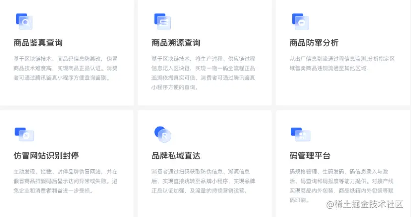 腾讯优码正品通提供防伪鉴真能力,实现一物一码全流程正品追溯,全链路数据存储至区块链,确保真实可信;更可直达品牌私域,实现流量进一步转化;同时正品通提供微信域内的品牌保护能力,阻断品牌伪冒网站传播、帮助消费者识别假冒商品。