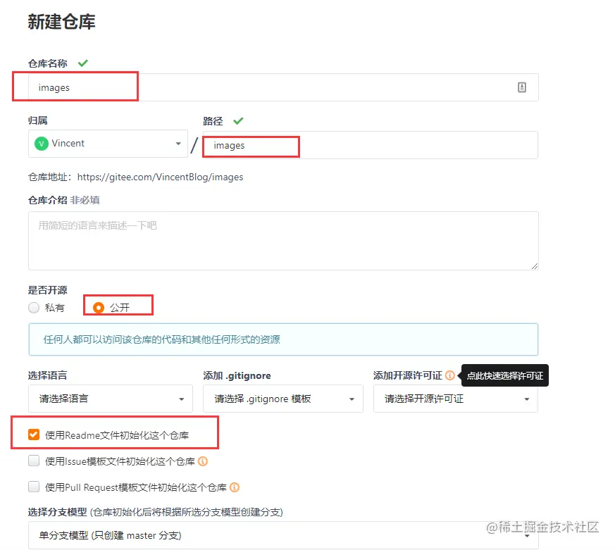 去码云Gitee创建你的新仓库: