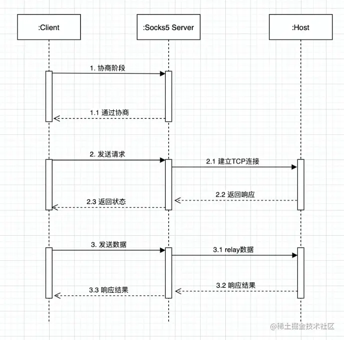 1. 客户端先和代理服务器进行协商,可能需要密码啊之类的