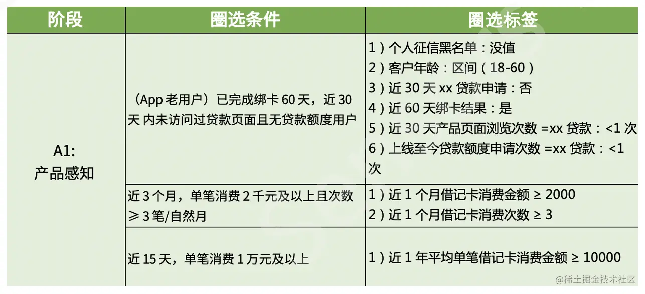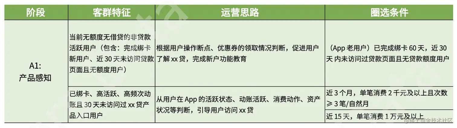 - 贷款业务 AARRR 前两个阶段客群策略示例: