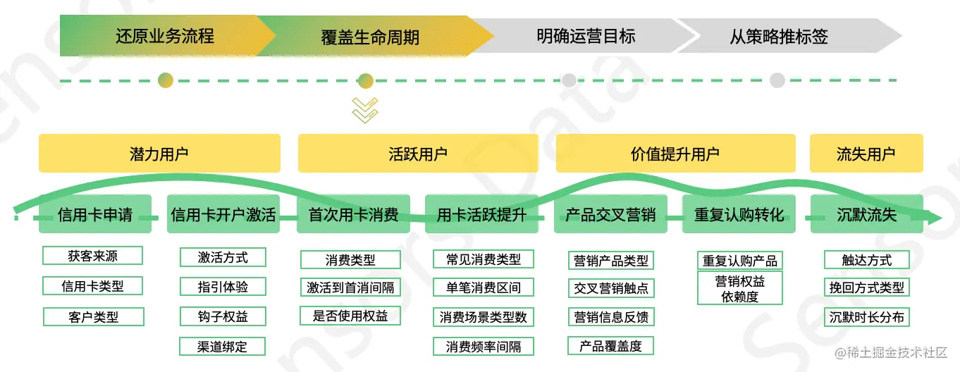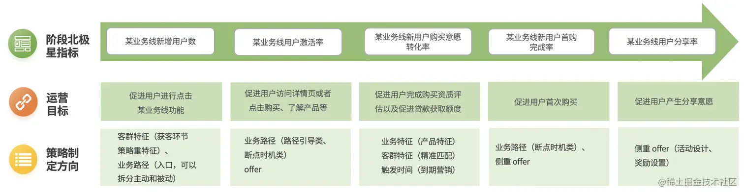 随着业务旅程路径以及客户生命周期阶段的明确,第三步则是聚焦在具体每个路径阶段中制定对应的运营目标,并推导出细分客群特征,形成客群策略。