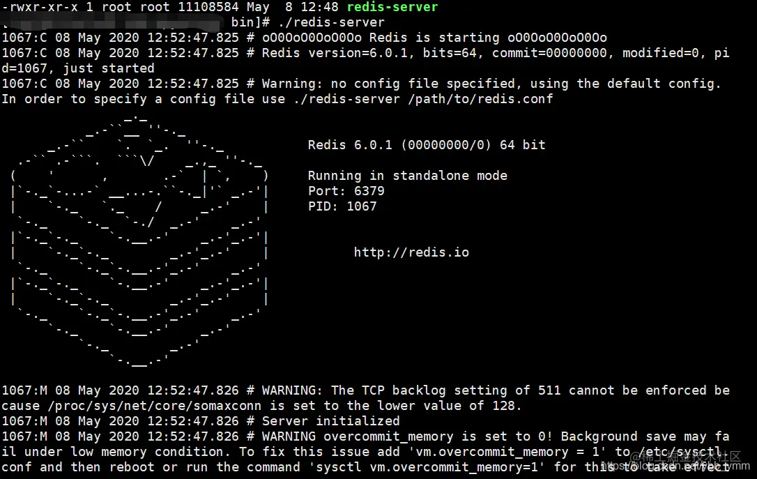 跳转到/tools/redis-6.0.1/bin目录下启动redis:命令:./redis-server