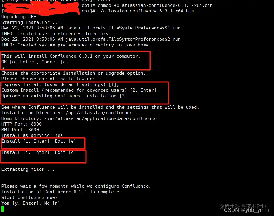 通过上图可以看出confluence安装到了/opt/atlassian/confluence和/var/atlassian/application-data/confluence目录下,并且confluence默认监听的端口是8090.一路默认安装即可!