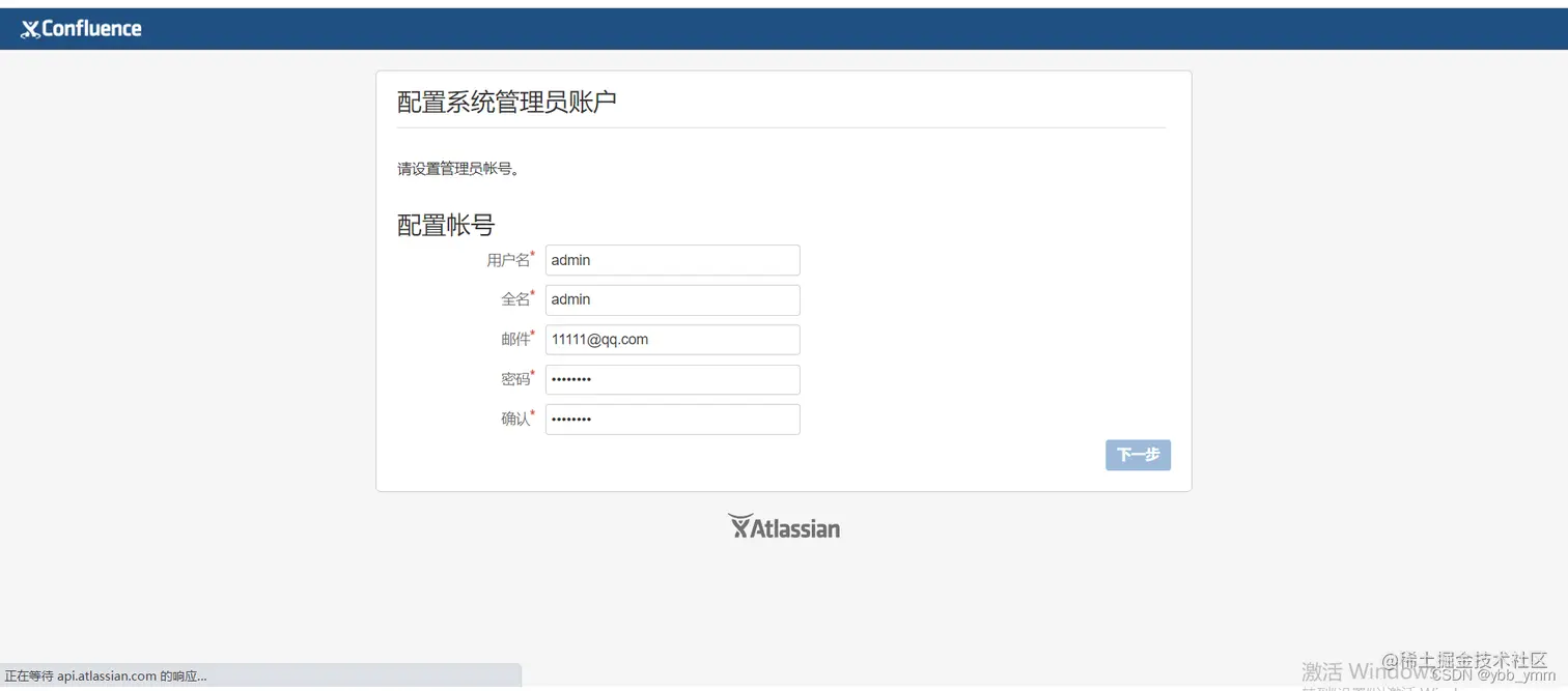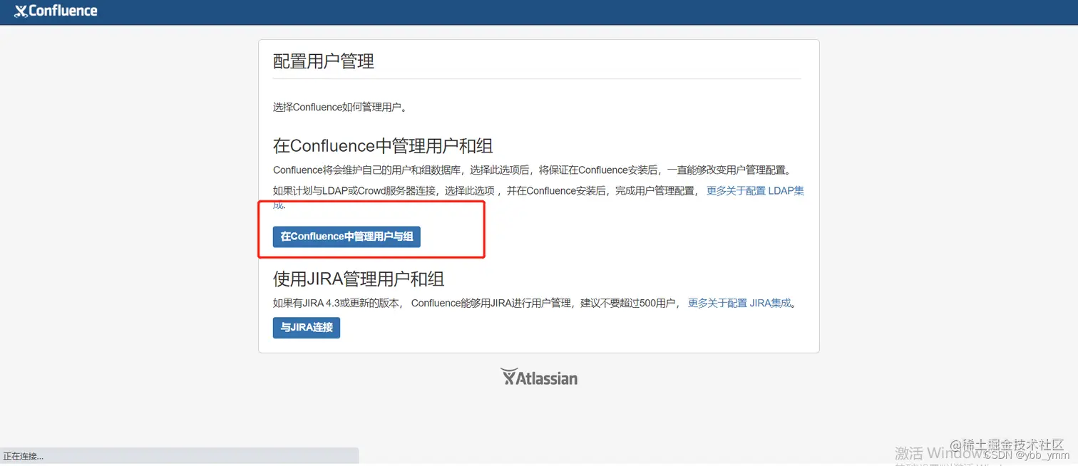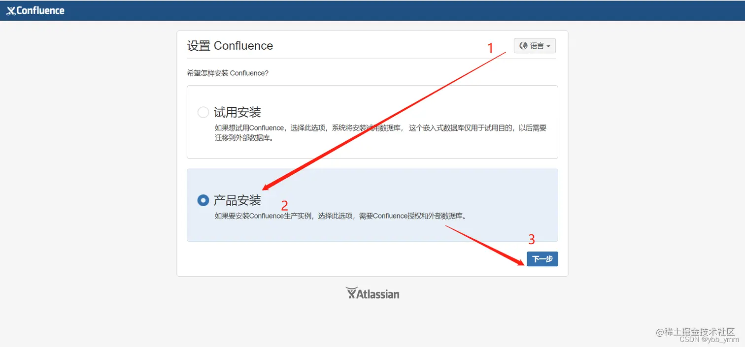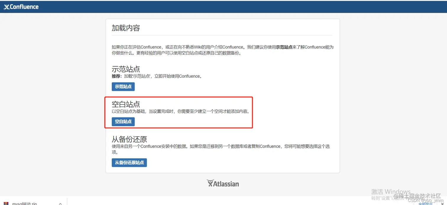 浏览器里输入http://ip:8090,访问confluence,按照图操作即可