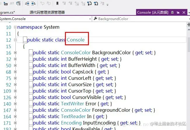 Step5.把光标定位于Console类上,点击右键,选择“转到定义”,即可查看当前类的定义,如下,