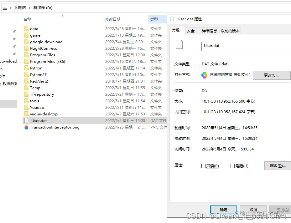 上述代码调整参数执行2次, 凑10个G的数据在D盘的User.dat文件里: