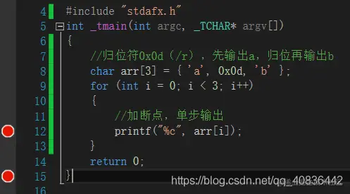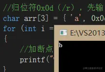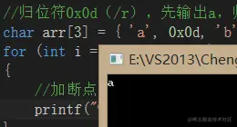 结果为第一次输出a光标在a后方,第二次归位光标跑到a的下方(因为a的位置就是起始位置),第三次输出b覆盖了a,最后结果只有一个b