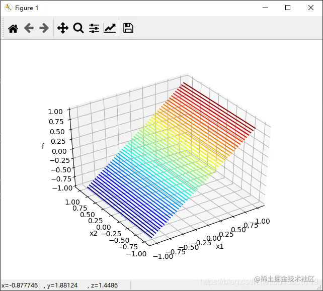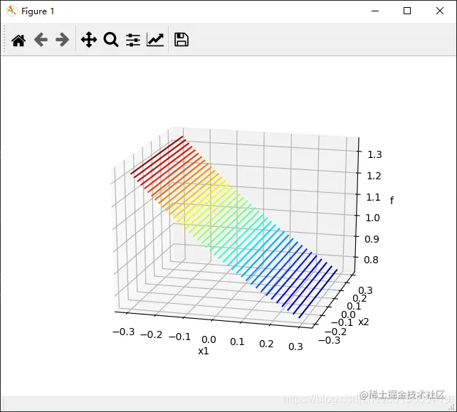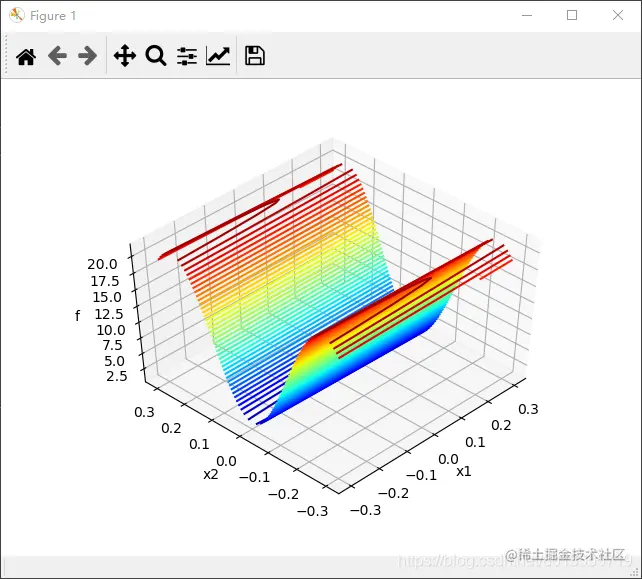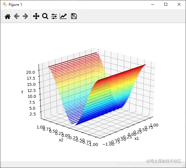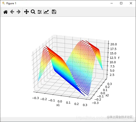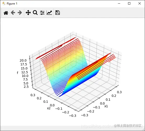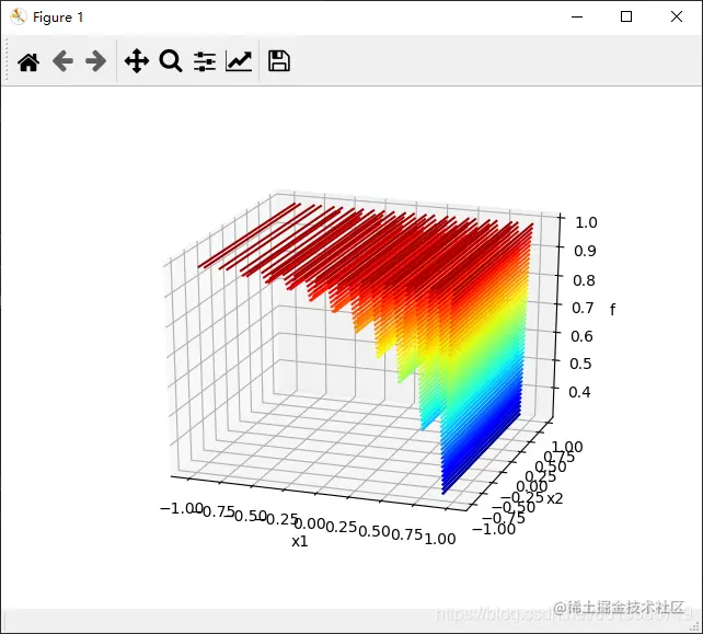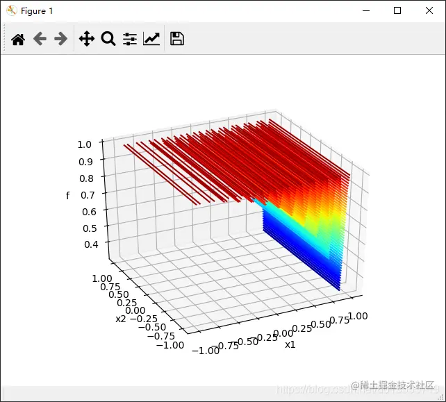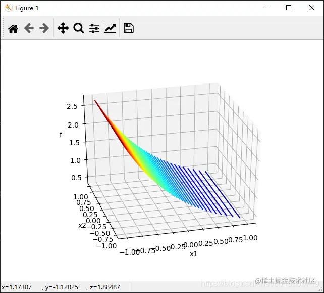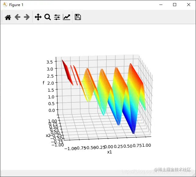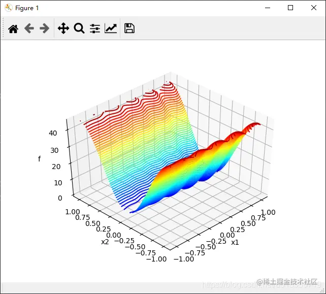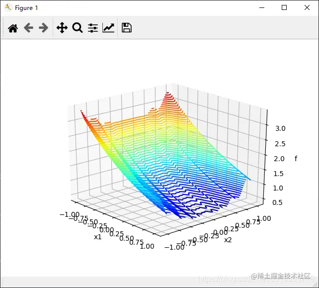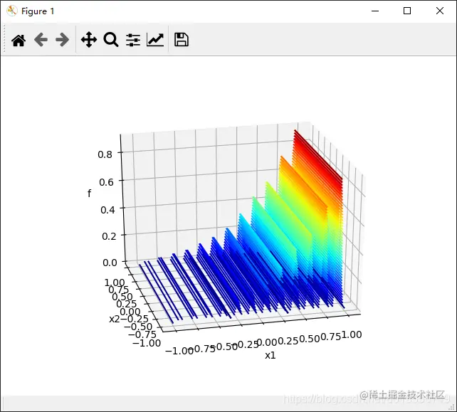 横纵坐标为两个变量x1,x2,纵轴为f1