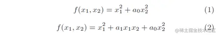 - 对于图1的第一个式子(1),发现其是变量可分的,并且和坐标轴对齐。两个变量可以单独的视为两个独立的优化问题进行优化。而当其进行旋转以后其是不可分的,因为引入了式子参数交叉项a1x1x2,只有同时对所有参数值进行改进,才能有效地向全局最优方向发展。