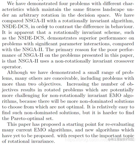 - EMO算法在坐标旋转下应该是不变的,以便有效地优化具有许多参数交互作用的复杂多目标问题。文献中报道的许多当前结果是针对那些不表现出复杂参数交互作用的问题,尽管这种交互作用是许多现实世界问题的特征[7]