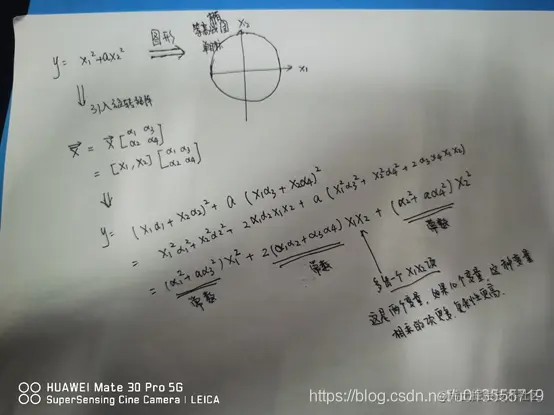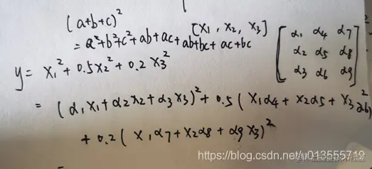 - 这个公式和初中学的椭圆的公式一样,当x1和x2分别取0时,可以在原坐标系的原点处得到最小值。其推导公式可以如下图所示。这当决策变量是二维,当决策变量是n维的时候,式子的项数为1/2(n²+n)