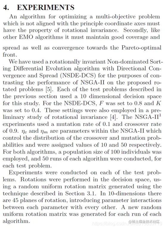- 在以下部分中,我们将更详细地描述旋转如何使单目标和多目标问题更难优化。 在第3节中,我们描述了提出的问题套件以及如何构造问题。 为了与NSGA-II算法进行比较,在第4部分中简要介绍了一种新的EMO差分进化方法,并进行了实验。 然后在第5节中讨论提出的问题套件的结果和实用性,并在第6节中作总结。