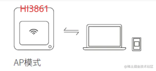 AP 模式(即 Soft-AP 模式或接入点模式),此时基站连接到 HI3861。