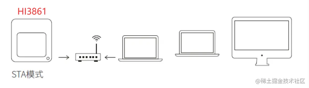 基站模式(即 STA 模式或 Wi-Fi 客户端模式),此时 HI3861 连接到接入点 (AP)。