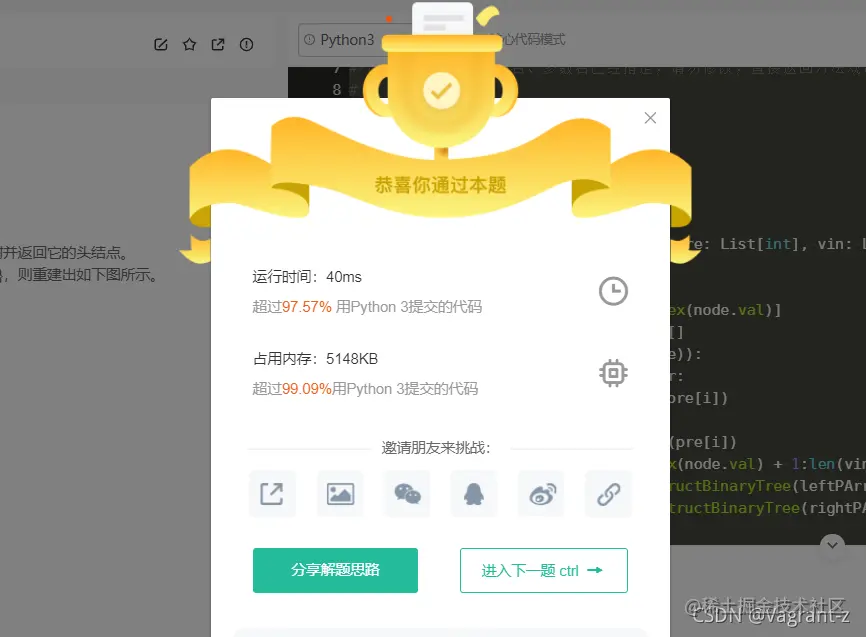 当前根结点的右子节点 = 重构函数(右子树前序遍历结果,右子树中序遍历结果)