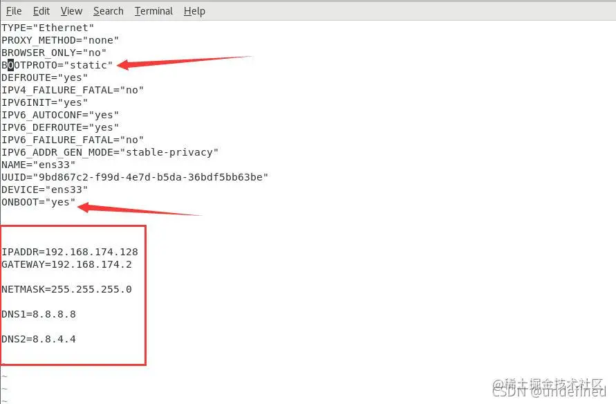 (3)ONBOOT设置为yes,默认应该就是yes的话不用修改。
