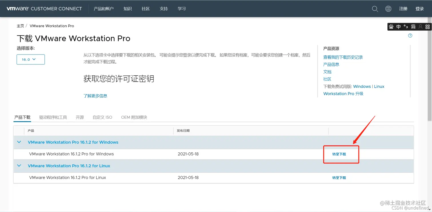 (1)下载了一个VMware 15版本的报错了,无法启动虚拟机,原来装的VMware14 pro版本直接打开电脑蓝屏重启了,最终选择了VMware 16版本。