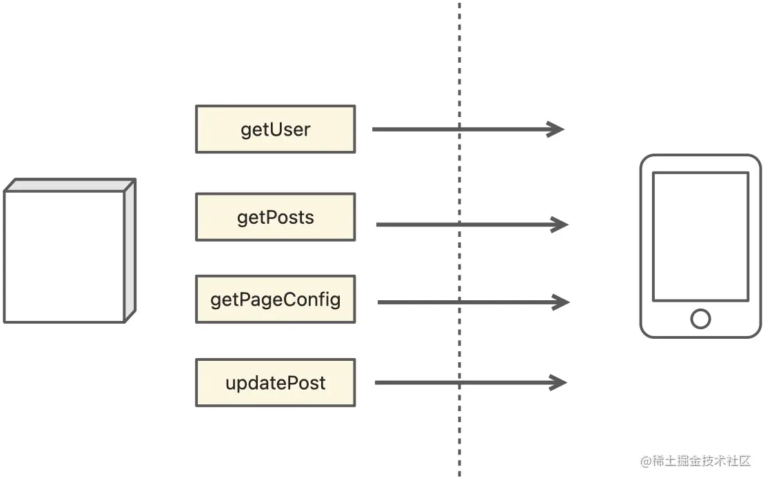 这可能是十几年以来非常普遍的研发模式了,也因此,我们被区分成前端开发和后端开发,各自负责着“楚河汉界”的一侧。我们在各自那一侧都做了非常多的优化、创新、突破,在后端,我们有容器化、微服务、SSR,在前端,我们有 code spliting、前端路由、React Hooks。 但是对于 API 层,我们似乎这么多年以来都未曾有过关注,即便是有,也仅仅是停留于 API 传输性能(例如 grpc)、API 的存在形式(例如 Restful 和 GraphQL)、API 的工程化管理(例如 Postman)。 并非是想说 API 一个邪恶而糟糕的设计,但是自从 Restful 的概念被提出以来,已经 22 年过去了,我们是不是应该在现在重新思考一下: