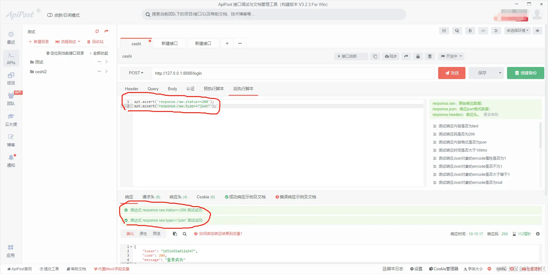因为 apipost 的断言是 JavaScript 语言编写的,所以我们可以自定义断言。