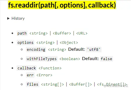 // withFileTypes属性改为true是为了在读取文件名称的时候顺便将其文件类型暴露出来