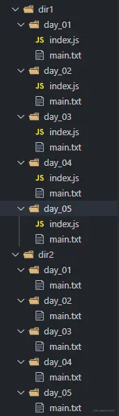 当我们执行 node test.js ./dir1 ./dir2 .txt命令之后,发现以txt为后缀名的文件都被拷贝过去了,说明我们的程序没有问题
