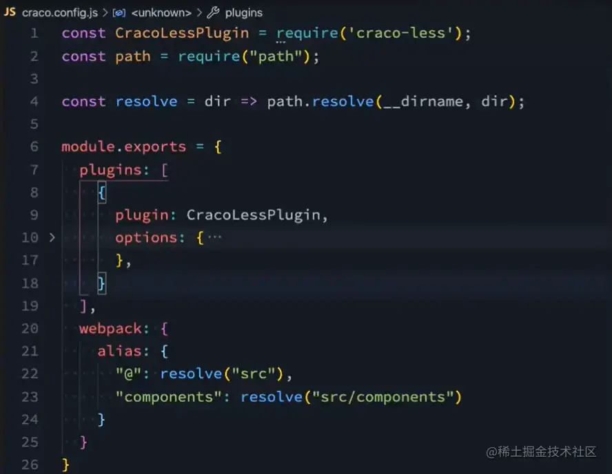 比如我们在react项目使用craco来配置路径别名的时候