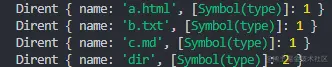 // 文件类型并不是Dirent对象下的属性,而是要我们通过isDirectory方法去获得