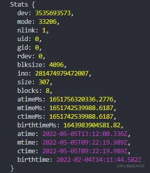 statSync方法可以同步读取我们的文件信息, 返回一个 fs.Stats 实例